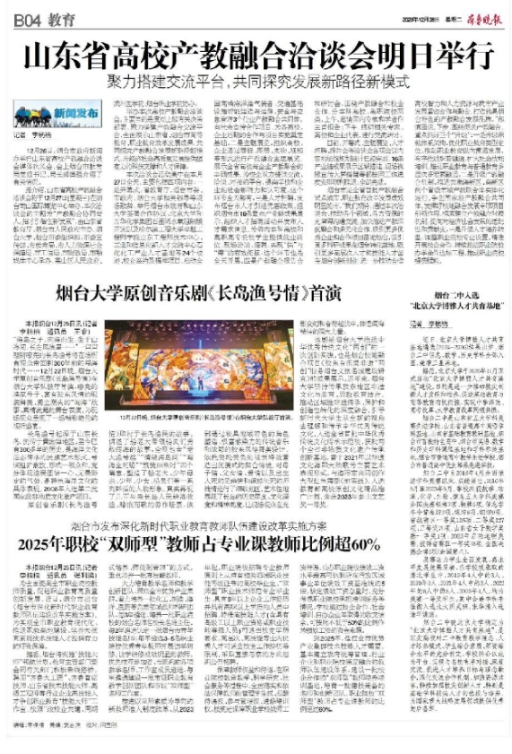 《齊魯晚報》12月26日B04版刊發《煙臺大學原創音樂劇<長島漁號情>首演》