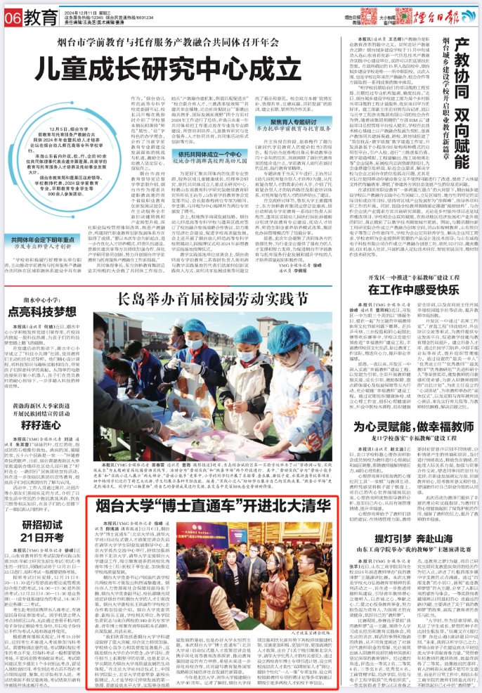 《煙臺日報》12月11日06版刊發《煙臺大學“博士直通車”開進北大清華》