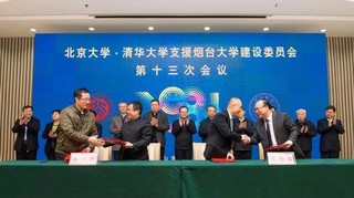 重溫難忘歲月,共襄發展盛舉。11月17日上午,北京大學、清華大學支援煙臺大學建設委員會第十三次會議在煙臺東山賓館召開。會議以“聚焦山東省新舊動能轉換重大工程建設,持續提升煙臺大學學科建設水平,推動校地校企深度融合,助力區域經濟社會發展”為主題,北京大學、清華大學與煙臺大學簽訂了具有建設意義的系列合作協議和意向書,與會專家圍繞高水平大學建設進行了研討。