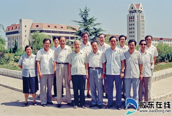 1990年8月,完成了援建任務即將離開煙大返京的部分援建者在校園內合影留念