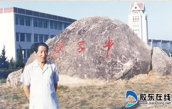 1990年8月11日,完成援建任務離開煙臺的前一天,沈克琦校長在“孺子牛”雕塑前留影