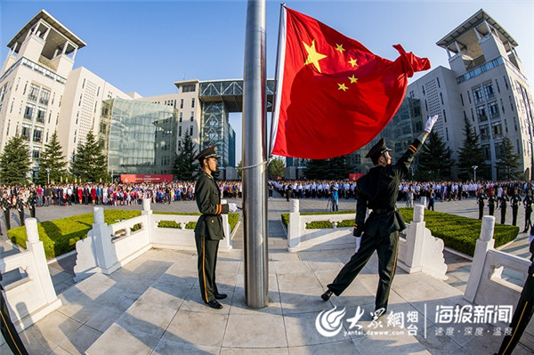山東高校十大師德標兵李慶忠與許多師生一樣一早就來到國旗廣場,共同見證五星紅旗迎風飄揚,共同迎接新中國成立70周年。他說:“看到國家日益強盛、人民生活日益美好,為自己是一名中國人而感到由衷的驕傲,國家的繁榮昌盛需要我們接續奮斗,我愿為學校發展貢獻自己的力量。”煙臺大學學生王秋梓表示,通過此次活動,更能感受到自己肩負的使命,祝愿偉大的祖國繁榮昌盛!