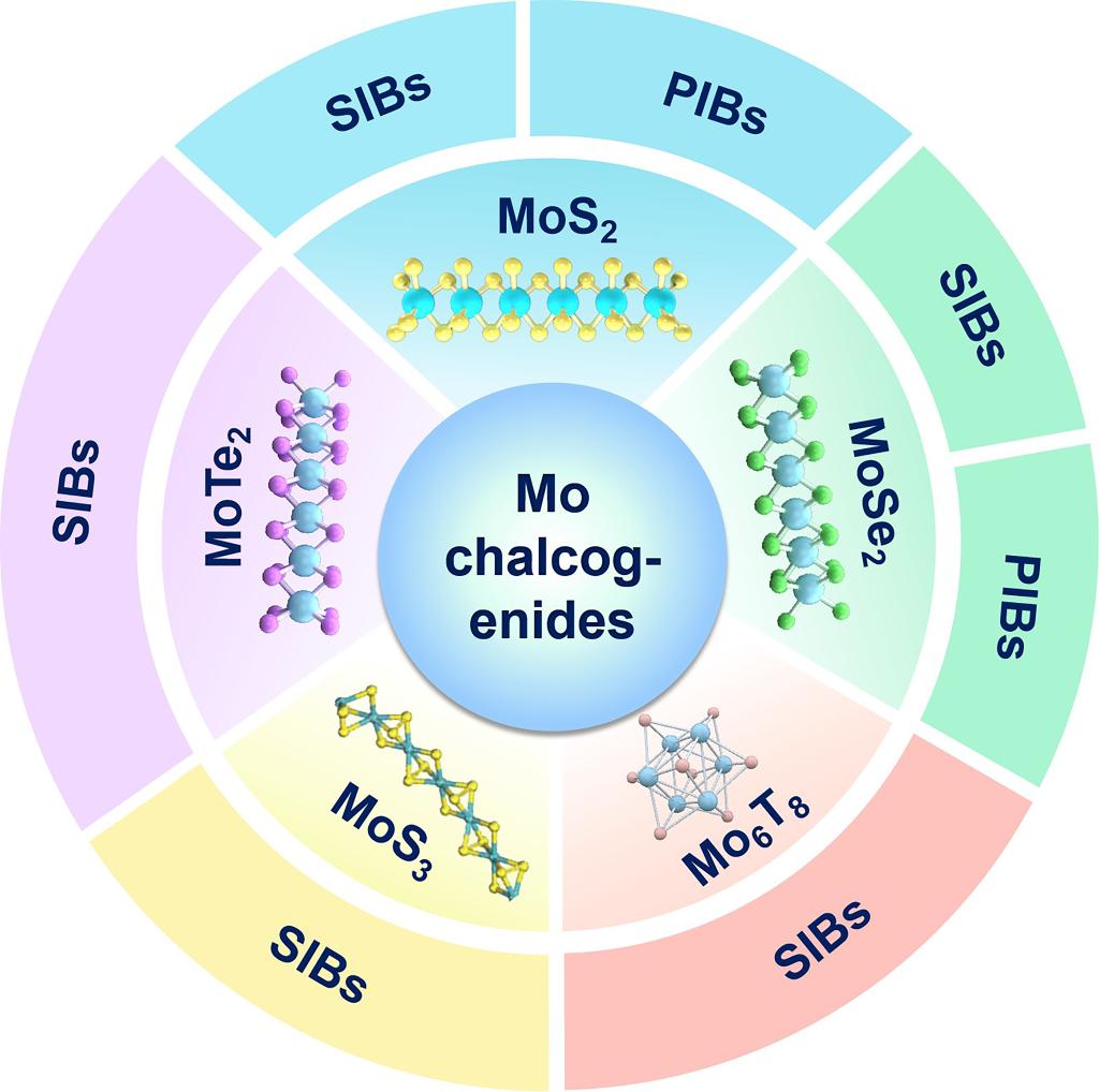 圖1.鉬基硫?qū)倩衔锝Y(jié)構(gòu)以及用于鈉電/鉀電示意圖
