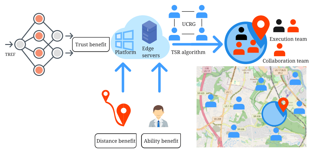研究團隊設計了基于圖卷積神經網絡(GCN)的信任強化評估框架(TREF),用于評估非對稱信任關系。采用Mini-Batch K-Means算法對任務發布區域進行劃分,并在不同區域部署邊緣服務器,從而實現了分布式工人招募的邊緣計算模式。通過綜合考慮工人的信任效益、能力效益和距離效益,將工人招募問題建模為無向完全招募圖(UCRG),并針對UCRG,提出了特定的禁忌搜索招募(TSR)算法,通過綜合考慮沖突和隱私策略,為每個任務招募最優的執行團隊和協作團隊。