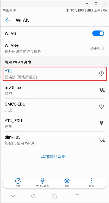 選擇校園無線網絡YTU;