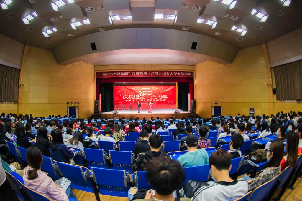 多年來,煙臺大學堅持將思想引領融入文化藝術,注重以文化人、以文育人,進一步增強師生文化自信。邀請黨史戲曲《江姐》來校專場演出,是學校開展黨史學習教育的重要舉措,旨在通過高質量高品位的藝術作品引導廣大師生更好地感悟共產黨人的初心之堅、使命之巨、信仰之真,激勵廣大青年學生堅定理想信念,傳承紅色基因,在矢志奮斗中譜寫新時代的青春之歌。