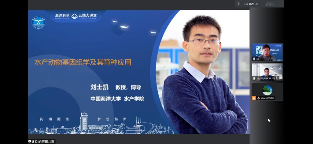 【本站訊】11月6日上午,煙臺(tái)大學(xué)舉辦第八期“星空”校友學(xué)術(shù)論壇暨海洋學(xué)院第二期“海洋科學(xué)云端大講堂”,此次論壇以線上方式舉行。海洋學(xué)院2002級(jí)校友、中國海洋大學(xué)教授、博士生導(dǎo)師劉士凱受邀為在校師生作了題為《水產(chǎn)動(dòng)物基因組學(xué)及其育種應(yīng)用》的學(xué)術(shù)報(bào)告?;顒?dòng)由煙臺(tái)大學(xué)海洋學(xué)院張全勝教授主持,2600余名在校師生和各界校友參加。