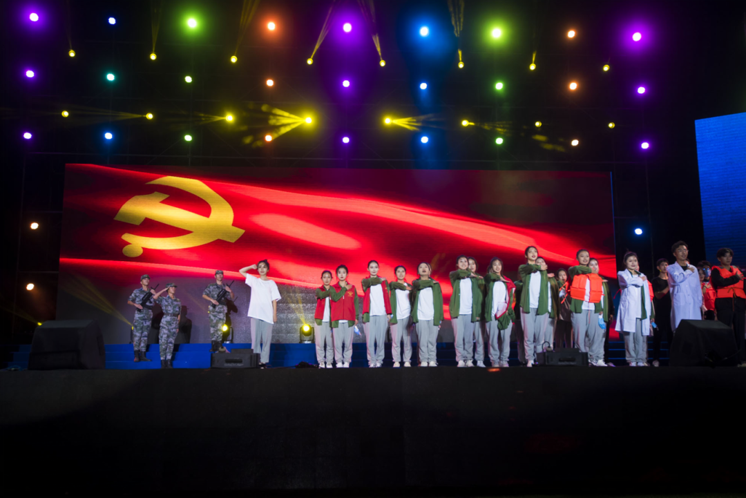 第三篇章中,講述《能吃苦》中,四名青年學生榜樣分別圍繞學習成長、志愿服務、科技創新與社會實踐四個方面,匯報了在青春的賽道上奮力跑出的最好成績,用實際行動表明了當代青年在實現民族復興賽道上奮勇爭先的勇氣與決心。全體新入職輔導員帶來的歌曲《一起向未來》旋律輕快、盡顯朝氣,表達了對美好明天的憧憬,傳遞著信心和力量。民樂合奏《追夢行》情隨弦起、心隨鼓動,展現了世界各地的煙大人發揚“海納百川、敢為人先”的煙大精神,追逐夢想的生動實踐,母校與校友同頻共振、共同進步。講述《肯奮斗》中,三位來自教學、科研、學生工作領域的青年教師代表圍繞自己的故事,詮釋出“堅韌不拔、埋頭苦干,辛勤耕耘、無私奉獻,關愛學生、甘為人梯”的煙大“孺子牛”精神。合唱《中國青年》恢弘大氣,表達出煙大青年堅定信念、志存高遠,懷揣夢想、勇當先鋒的信心和決心。“偉大的中國共產黨!乘風破浪,揚帆遠航,領航中國在新時代的征程上……”高亢激昂的《領航》歌聲響起,帶領全場觀眾走過中國共產黨百年光輝歷程,唱響喜迎二十大、永遠跟黨走、奮進新征程的主旋律。