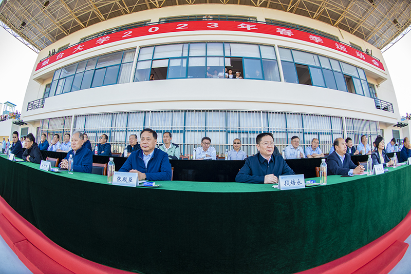 “體育承載著國家強盛、民族振興的夢想,體育強則中國強,國運興則體育興。體育是學校人才培養的重要內容,體育的過程既是培養學生運動興趣、運動技能的過程,也是磨練學生意志品質,塑造學生精神面貌、性格乃至價值觀的過程……”校長段培永在開幕辭中表示,近年來,學校服務教育強國、體育強國、健康中國建設,秉持健康第一的教育理念,推進體育教學改革和建設,加大資金投入力度,提升了體育場地設施水平,積極打造特色品牌競技項目,體育事業發展取得顯著成效。本屆春季運動會是對廣大師生員工精神風貌和時代風采的集中展示,也是對學校體育教育和體育運動水平的一次檢驗,更是學校貫徹落實黨的二十大精神,高質量推進體育育人工作、助力社會主義現代化強國建設的重要舉措和生動實踐。段培永希望廣大師生以本屆運動會為契機,牢固樹立科學的教育觀、人才觀和健康觀,積極主動參與體育運動,為學校體育事業發展營造良好環境。要構建高質量體育教學體系,更好地發揮體育獨特的育人功能,不斷強化體育師資隊伍建設,深化體育教學綜合改革,健全學生體育評價與考核體系,努力培養德智體美勞全面發展的社會主義建設者和接班人,為新時代教育強國、體育強國、健康中國建設貢獻煙大力量。