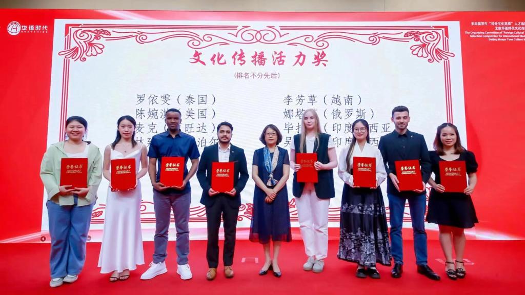 煙臺大學越南籍研究生李芳草(右三)獲文化傳播活力獎