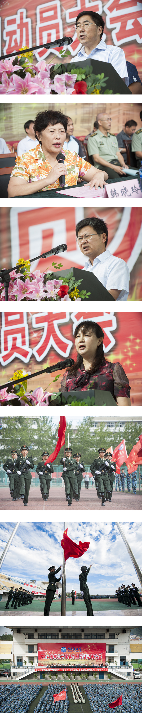 荷花映日笑迎八方學子,丹桂飄香共祝美好未來。9月9日上午,煙臺大學2014級學生開學典禮暨軍訓動員大會在體育場隆重舉行。學校領導崔明德、房紹坤、江林昌、韓曉玲、郭善利、張偉、鄧昌亮,山東省軍區駐煙臺大學選培辦副主任王春雷及各學院黨政、機關各部門、直屬單位主要負責人出席開學典禮。典禮由副校長韓曉玲主持。