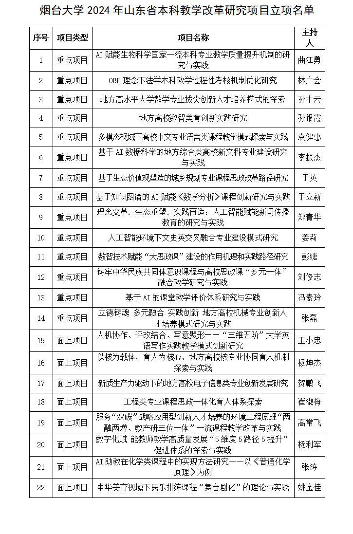 煙臺大學省級本科教學改革研究項目立項數量再創新高
