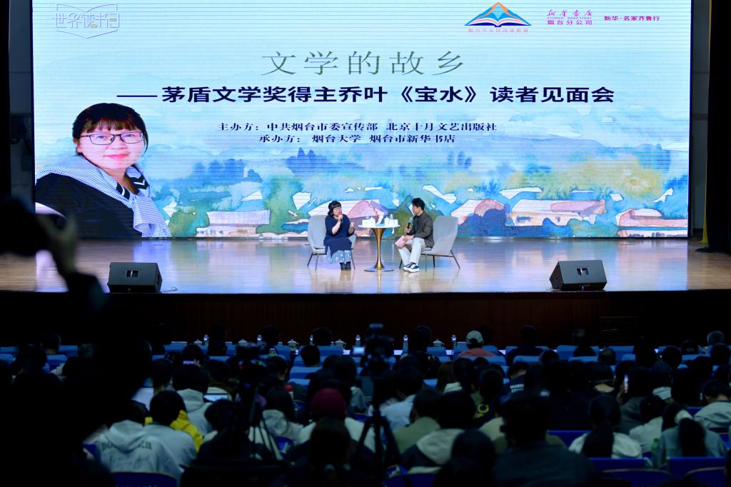 【本站訊】4月23日下午,由中共煙臺市委宣傳部、北京十月文藝出版社主辦,煙臺大學、煙臺市新華書店承辦的“茅盾文學獎得主喬葉《寶水》讀者見面會”在煙臺大學弘毅廳舉行。煙臺市委宣傳部副部長鄒德寶,煙臺大學副校長王洪波,煙臺市新華書店總經理葛磊,煙臺市文聯黨組成員、副主席張行方出席。