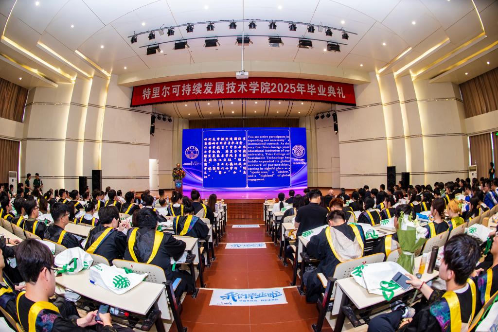 【本站訊】初心如磐行致遠,云程發軔譜新篇。6月12日下午,特里爾可持續發展技術學院2025屆畢業典禮在致道廳舉行。黨委副書記、校長郝曙光出席典禮并致辭,德國特里爾應用技術大學校長Dorit Schumann通過視頻連線方式出席并致辭。黨委常委、副校長馮素玲、姚昌,副校長王洪波,德國特里爾應用技術大學應用物質流管理研究院院長Peter Heck,我校黨委(學校)辦公室、研究生處、學生工作處、環境材料與工程學院等單位負責人,兩校教師代表,學生家長代表,學院全體教職工和2025屆畢業生共同見證了這一重要時刻。典禮由馮素玲主持。