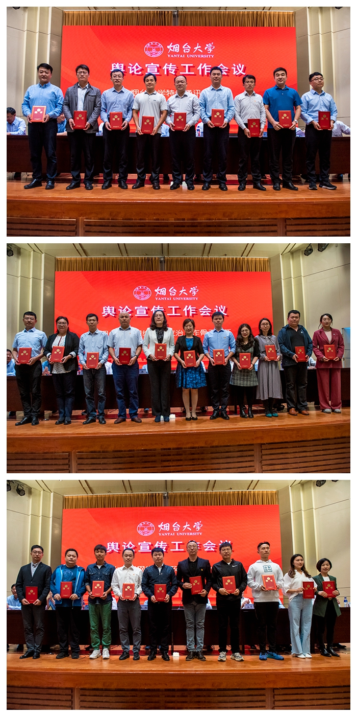 會議表彰了2019年度輿論宣傳工作先進集體和個人,向聘任的煙臺大學特約通訊員和網絡思想政治工作骨干頒發了聘書。校友工作辦公室副主任段昕、環境與材料工程學院副處級組織員陳穎、人文學院團委副書記侯朝洞分別代表2019年度十佳校園新媒體、特約通訊員和網絡思想政治工作骨干在會上作交流發言。