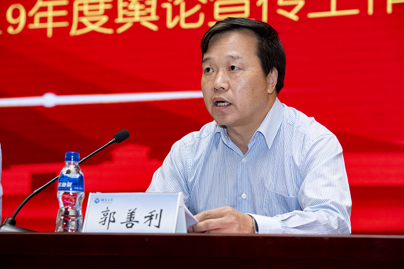 郭善利在主持講話中強調全校各單位要將思想和行動統一到學校黨委的工作部署中來,切實提高政治站位,進一步完善黨委統一領導、黨政齊抓共管、黨委宣傳部組織協調、所有單位履職盡責共同參與的大宣傳工作運行機制;全面加強宣傳隊伍建設,注重隊伍體系構建和工作積極性調動,打造適應新形勢輿論宣傳工作的生力軍;積極利用各方面的動能,大力整合校內外的資源,深入推進媒體融合,主動拓展外宣渠道,充分借力專業力量,進一步提升我校的輿論宣傳水平。