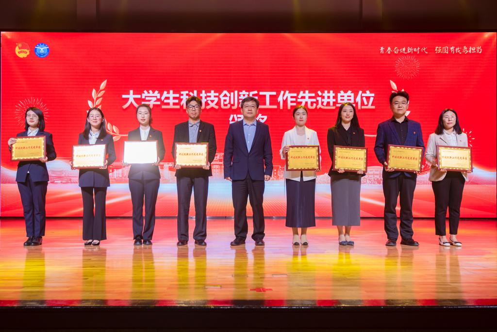 表彰大會(huì)上,學(xué)校領(lǐng)導(dǎo)為優(yōu)秀共青團(tuán)干部、優(yōu)秀共青團(tuán)員、十佳紅旗團(tuán)支部、十佳社團(tuán)、大學(xué)生科技創(chuàng)新工作先進(jìn)單位和紅旗團(tuán)委頒獎(jiǎng)。